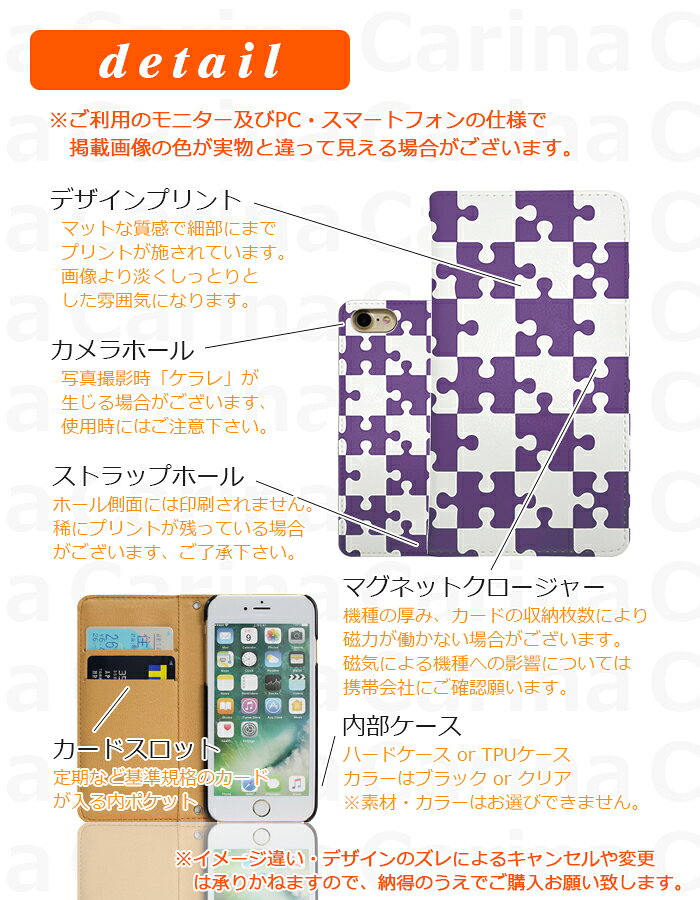 ケースの詳細 ケースのタイプ : 手帳型 ( ベルトなし ) 手帳の生地の素材 : 合皮レザー ( ポリウレタン ) ハードケースの素材 : ポリカボネート ハードケースのカラー : クリア もしくは ブラック ケースの機能と特徴 : カメラホール / マグネットクロージャー / カードスロット ハードケースで背面や角を守る事に併せて、スマホの前面を手帳カバーで覆います。