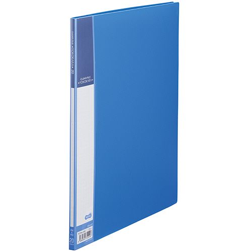 書類が入れやすいクリヤーファイル「ヨコカラ」 A4タテ 20ポケット 背幅8mm ブルー 1冊