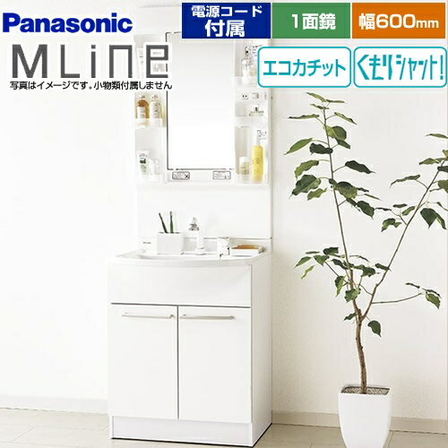 [GQM60KECW+XGQM060DSUATC] パナソニック 洗面化粧台 幅600mm エムライン MLine 1面鏡(LED) エコカチットあり ホワイト 電源コード付属 【送料無料】