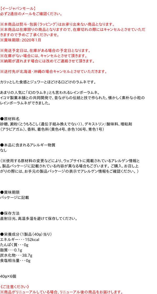 [関連キーワード:お菓子 おやつ ラムネ 清涼菓子 らむね ]UHAピピン レインボーラムネミニ 40g はコチラ >>【イージャパンショッピングモール】内のみのお買い物は、送料一律でどれだけ買っても同梱する事が出来ます。