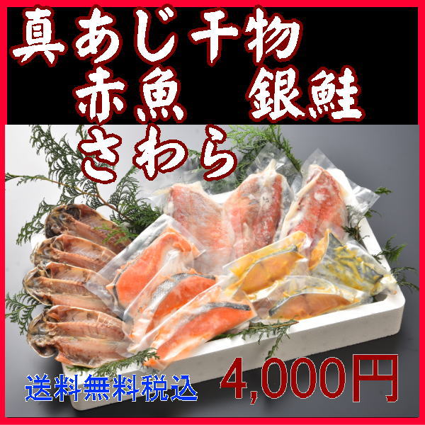 あじの干物と粕漬け・味噌漬けとコンパクトながらもバラエティ豊かな干物セットです。